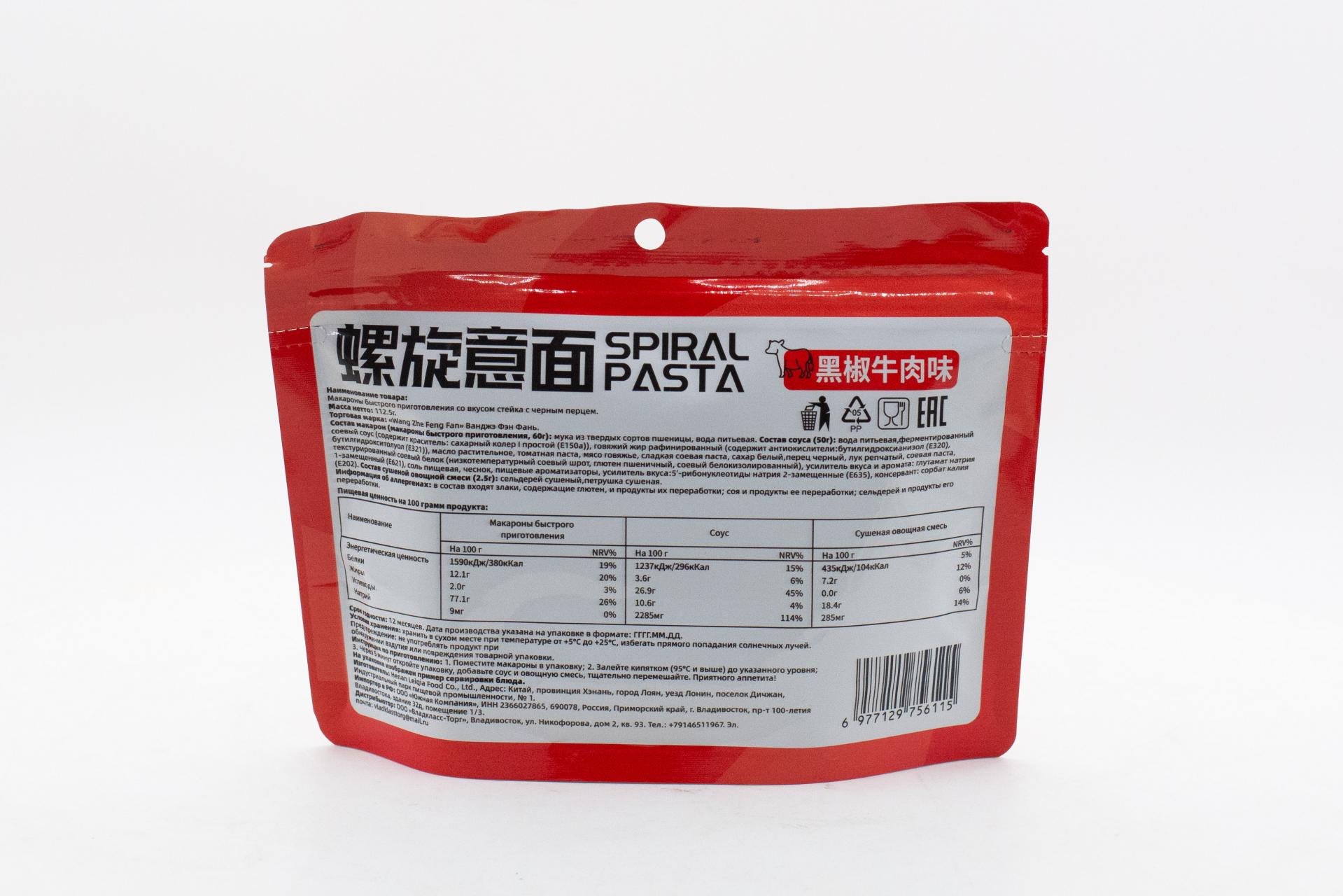 Макароны б/п Ванджэ Фэн Фань со вкусом стейка с черным перцем (Китай) 112,5г103,64 руб. за штуку (в упак. 50 шт.) |
